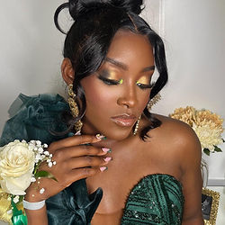 Makeup application includes glowing skin, eyeshadow application, blush, a lip combo, and the application of mink strip lashes.